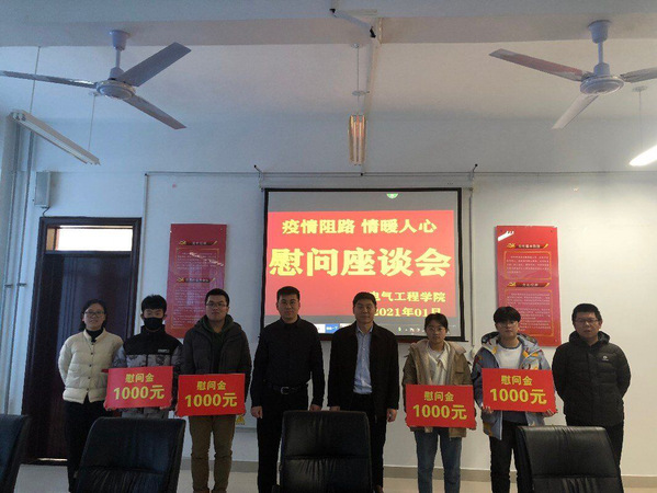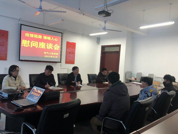电气工程公司2020年1月2日中午11点在11教313举办“疫情阻路·情暖人心”慰问座谈会,电气工程公司党总支书记刘廷明、副书记张志、员工科全体成员和被慰问员工参与此会。