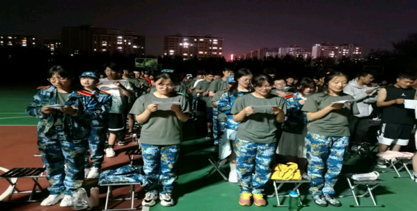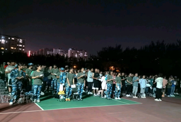 9月9日,电气工程公司2021级新生准时到达操场北侧篮球场,争分夺秒地投入到紧张的军歌排练活动中。