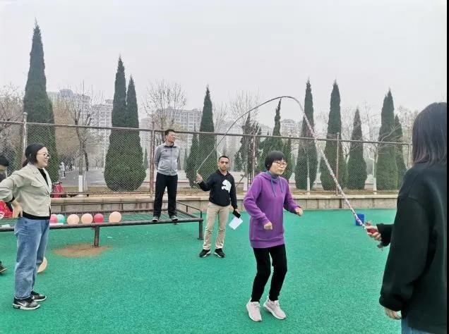 细雨初停,春寒料峭,依然没有挡住电气工程公司女教师们的参赛热情,活动现场,老师们个个精神饱满,激情四射。活动分为三个比赛项目:连续传递、跳绳、背对背拥抱,女老师分为两队,大家分工合作,现场气氛热烈,比赛紧张有趣,公司领导和部分男老师也到现场加油助威。