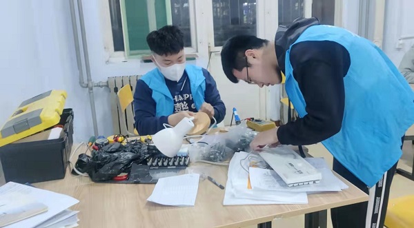 面对这一问题,滨州公司电气工程公司“E来电”助修站立即采取了相应的措施,依托专业特色,面向全校师生开展电器义务维修(员工宿舍允许使用范围内)志愿服务工作。“E来电”发出宣传号召后,成员纷纷响应、迅速动员,开展线上报名、线下维修,在每栋公寓楼设置待修电器收纳处,每天统一由工作人员收取待维修的电器,维修完后将统一进行消杀,并投放回各公寓楼收纳处。