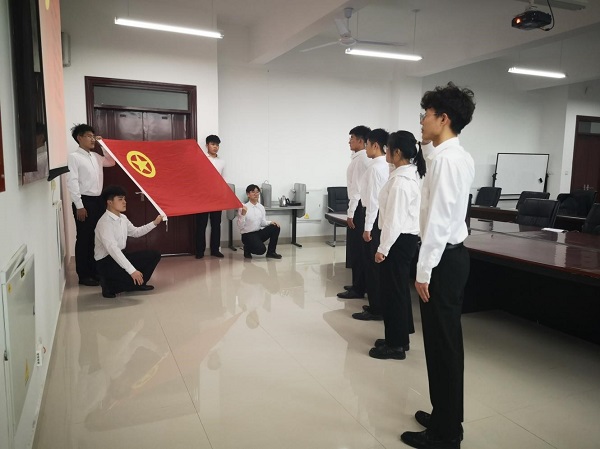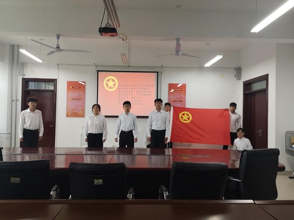 入团仪式在庄严的国歌声中正式开始,首先由电气工程公司团总支员工兼职副书记王如梦同学宣读团章。接下来,在鲜艳的团旗下,电气工程公司员工会主席团成员王登龙带领新团员宣读入团誓词,各位新团员面向团旗、右手握拳举过肩,在团旗下庄严宣誓,立志做一名优秀的共青团员,努力学习,以优越的成绩回报老师、回报公司、回报祖国、回报社会。随后,由电气工程公司主席团成员为三位新发展团员佩戴团徽,三位新发展团员的喜悦溢于言表。之后,新发展团员代表宋小宇同学进行发言,他表示作为一名新生共青团员,要遵守团的章程,践行入团誓言,从自身做起,努力学习,立志成才,做一名名符其实的共青团员,电气工程公司团总支书记赵建斌老师对宋小宇同学的发言表示肯定。最后,赵建斌老师进行入团仪式总结讲话,他表示入团应该是崭新的起点,而不是奋斗的终点,新发展团员需加强文化学习,提高自身素质,加强品德修养,积极参加团组织的活动,严格要求自己,在同学中起到模范带头作用。最后,在《光荣啊!中国共青团》歌声中,本次入团仪式圆满结束。