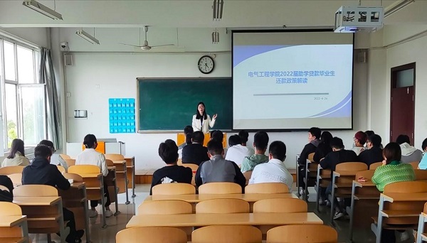 为进一步增强老员工诚信意识,帮助贷款毕业生了解助学贷款还款手续,提高老员工征信意识,滨州公司电气工程公司于2022年4月27日下午15:30在八号教学楼401教室召开2022届助学贷款毕业生还款政策解读会。电气工程公司辅导员王莉、院员工会助学部全体成员以及助学贷款毕业生参加了本次活动。