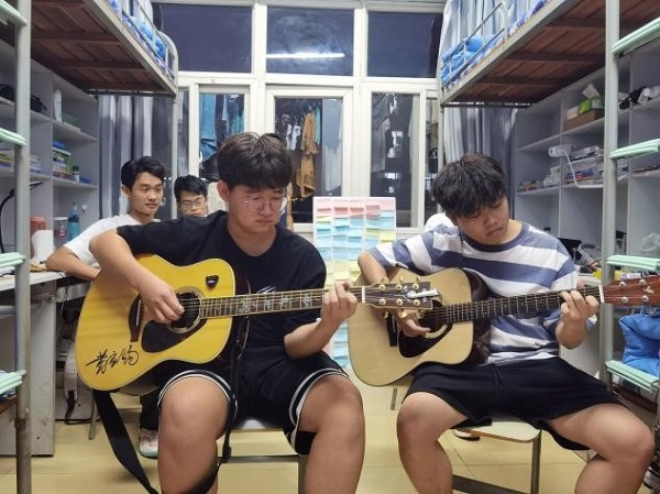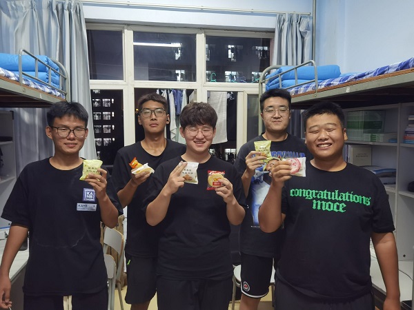 本次活动主要包括发放月饼、以宿舍为单位组织才艺表演、以及向家长及老师写节日祝福语等环节。活动开始前,由赵建斌老师与各位小班向新生们发放月饼,他代表电气工程公司向22级新生送上节日的问候与祝福,传递了浓浓情义,让大家感受到家的温暖和传统节日的魅力,在温馨暖暖的氛围中,新生们围坐一起欢聚一堂,品尝香甜美味的月饼。随后,举行了期待已久的才艺表演环节,唱歌、弹吉他,样样才艺都不落下,同学们自信地展示着自己的才华,宿舍内一片欢声笑语,掌声如潮、气氛热烈。接着,同学们拿起便利贴,在上面写下中秋时节对家人的思念,以及对老师们辛勤付出的感恩之情并与展板拍照留念,将这份温暖记录下来。活动最后,赵老师总结到,这是一个特别的中秋,特别的团聚,是一个终生难忘的夜晚,即使疫情暂时与家人朋友不能见面,但是大家的心始终在一起,期盼疫情早日过去,一切恢复正常。