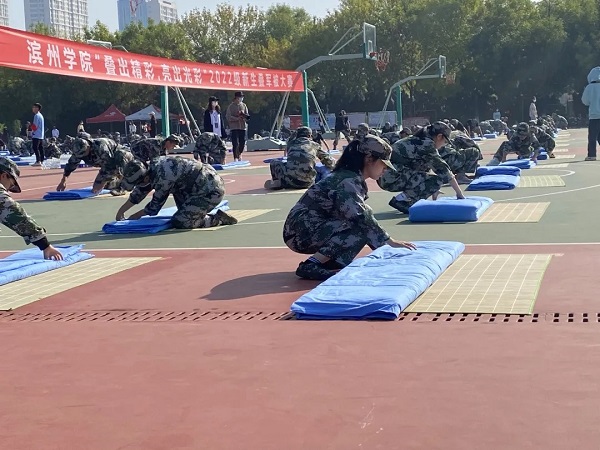 首先,开始叠军被表演。在叠军被过程中,同学们动作有条不紊,得心应手;争分夺秒,认真细致。通过“折、切、捏、压、抠”等叠军被技巧的运用,一床床棱角分明、整齐划一的军被展现在大家面前,翻叠、折角、捏线不放过每一个细节。出门看队伍,进门看内务。内务整理是军训中的必备项目,能体现出我们对于军训的态度,磨练我们的精神,锻炼我们的意志。然后,公司举行了军歌歌唱比赛,青春无畏,正是逐梦时。此次活动,同学们都饱含热情地投入到军歌汇演中去,意气风发,斗志昂扬,尽显公司新生学子的青春风采,他们用满腔的激情唱出对祖国和公司的无限热爱之情,唱出对梦想和未来的憧憬与期待。将激昂雄壮的歌词汇聚成一往无前的强军誓言,鼓舞士气,催人奋进,展现了公司新生学子蓬勃的朝气和团结向上的凝聚力。随后,擒敌拳训练是滨院军训开设的国防体育特色项目,其中擒敌拳是擒敌术主要技法动作的单人综合练习,由16组技法动作合成,融入了所有擒敌术的手型、步型及攻击、防守技法。公司新生学子们动作精准,只听一声令下,队员们迅速到位,无论是弓步冲拳、马步横打,抑或是反击勾踢、交叉侧踹,都能做到虎虎生风、英姿飒爽。最后是模拟射击比赛活动,教官一声令下:“卧姿”,新生同学们快速匍匐卧倒,双腿呈八字形,他们目光如炬,牢牢盯住标靶,做好射击准备。他们认真的进行每一次射击,帽檐下是一双双坚定的双眼,把青春压进枪膛,把钢枪担任在肩上!