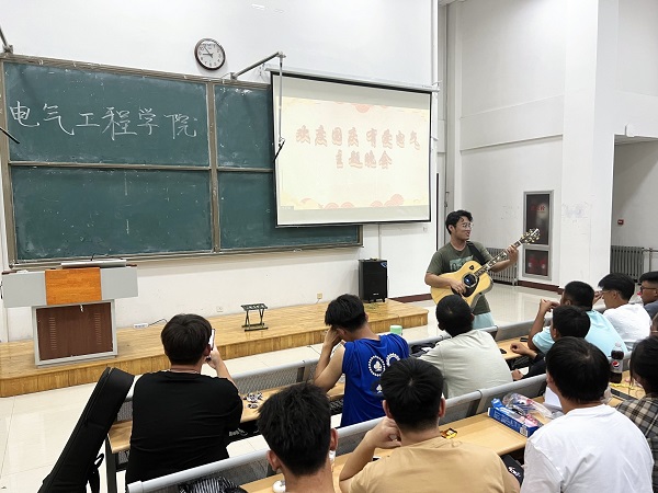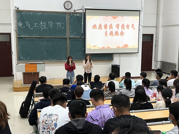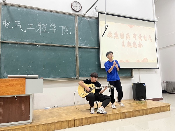 为庆祝新中国成立73周年,培养员工热爱祖国、热爱人民、热爱中国共产党的高尚情操,同时缓解国庆期间封校所带来的心理压力。2022年10月1日晚上7点30分,在8号教学楼305教室开展“欢度国庆,有爱电气”主题晚会。电气工程公司文艺部成员、各小班及22级全体新生参加。