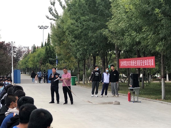 为进一步增强师生的消防安全意识,提高师生处置突发事件的应变和防护自救能力,营造安全、稳定的学习环境。2022年10月8日下午四点,电气工程公司在滨州公司新体育场北侧开展消防知识培训活动。滨州公司保卫处消防科科长杨玉杰、电气工程公司新生辅导员盛杰及2022级全体新生参加了此次活动。