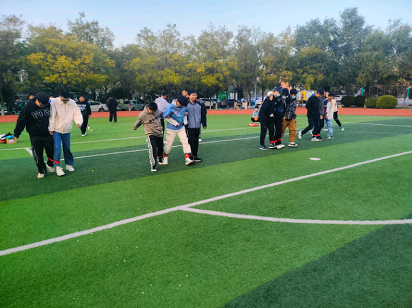 活动前期,各班负责人充分宣传,鼓励同学们积极参加。活动开始,由本次活动负责人向同学们介绍本次团建的主题和游戏规则,同时提醒同学们要注意安全。参加活动人员首先自愿分为4个或者5个小组,参加两人三足、老鹰捉小鸡、吹气球等活动。各个活动都调动着同学们每个人的洞察力和判断力,充分发挥团队协作精神。每个同学都表现的非常热情和积极,在相互交流的过程中增进了同学们的了解和友谊。活动过程中欢笑声不断,同学们默契配合,共同协作完成了一个又一个的活动任务。快乐的时光总是短暂的,活动最后,由本次活动负责人再次重申了本次活动的意义,祝愿22级新生有一个愉快充实的老员工活,至此,活动圆满结束。