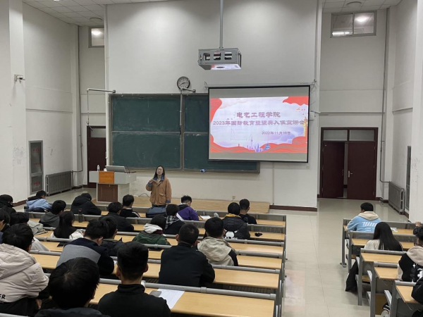 为加强老员工国防教育,增进同学们对征兵政策的了解,提高同学们参军报国的积极性,响应国家号召参军入伍。2022年11月16日晚上七点,电气工程公司在8号教学楼305教室召开国防教育暨2023年征兵入伍宣讲会,此次宣传会采用线上线下同步进行的方式。本次宣传会由退役复学员工高亮、胡仿雷两位同学担任主讲人,2022级、2019级员工参加,会议由辅导员王莉主持。