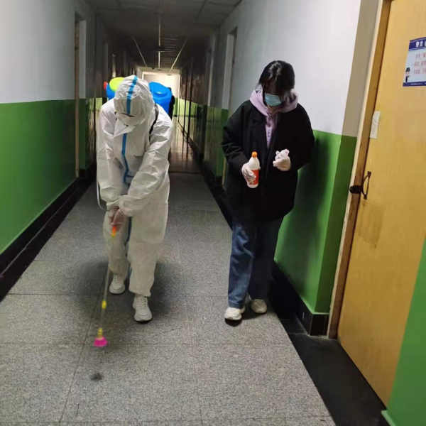为缓解医护人员压力,保证日常工作的顺利进行,公司志愿者们不怕吃苦,责任在肩,勇往直前。在目前疫情常态化的情况下,要坚持每日宿舍消杀,隔日核酸检测这些必要举措,此次活动也主要围绕着宿舍消杀和核酸检测两项工作展开。志愿者们分别在8号、13号公寓楼前集合进行准备工作,在明确工作流程以及注意事项后正式开展工作。活动开始,志愿者们秉持着服务同学,不求回报的态度,积极投入工作中。首先选择同学们的上课或休息时间,人员流动少的时候,志愿者同学们开始进行宿舍消杀工作。在楼道、在公共洗漱间、在楼梯等各个地方,都能看见志愿者们的身影。在消杀过程中,志愿者们认真负责,不放过每一个卫生死角,努力做到消杀全面,为同学们营造健康、安全的宿舍环境,彰显出平凡而伟大的志愿精神。
