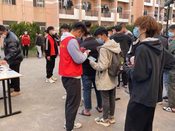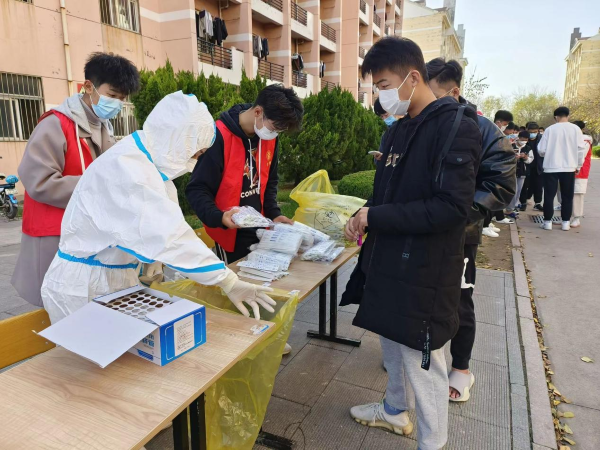 同样对于常态化的核酸检测工作,每日坚守在岗的医护人员和志愿者们会在核酸开始之前进行对接,统筹安排好检测流程,做好分组工作并分发棉签,提前通知每个年级的核酸时间点,错峰核检防止人员密集、排队过长等问题,为同学们筑起了防疫道路上一道靓丽的“青春防线”。正是有了不怕苦不怕累的志愿者们,核酸检测工作才能准确无误的进行下去。