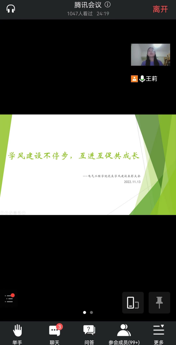 为总结过去一年来学风建设成就,表彰电气工程公司“学风建设”活动中表现优异的先进个人和集体,引导员工树立勤奋好学精神,发挥榜样的带头作用,推进公司学风建设。为严格遵守公司疫情防控规定,电气工程公司于11月13日晚8点30,利用腾讯会议线上大会的形式举办了学风建设表彰大会。此次大会由电气工程公司员工科科长赵建斌主持,参加本次大会的全体辅导员、班主任老师以及全体员工。