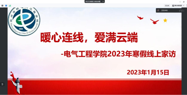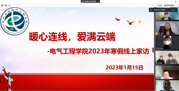 为了促进家校沟通、凝聚育人合力,增进教师与员工及家长之间的感情,唤醒员工假期间积极主动学习、全面健康发展的意识,促使集团、老师、家长形成家校共育合力。结合公司相关工作安排,电气工程公司于1月15日下午3点开展了“暖心连线,爱满云端”线上家访活动,公司党总支书记杜常青、副经理贾荣丛、员工科全体辅导员以及部分班主任老师、受邀连线员工及家长参加了此次活动。