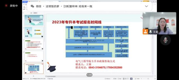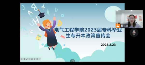 为了让2023届专科毕业生更好的了解专升本政策,提高同学们对专升本的重视,调动专科同学们升本的积极性。2023年2月23日下午6点,电气工程公司在线上召开了2023届专科毕业生专升本政策宣传会。本次政策宣传会由公司辅导员王莉老师主持,2023年全体应届专科毕业生参加会议。