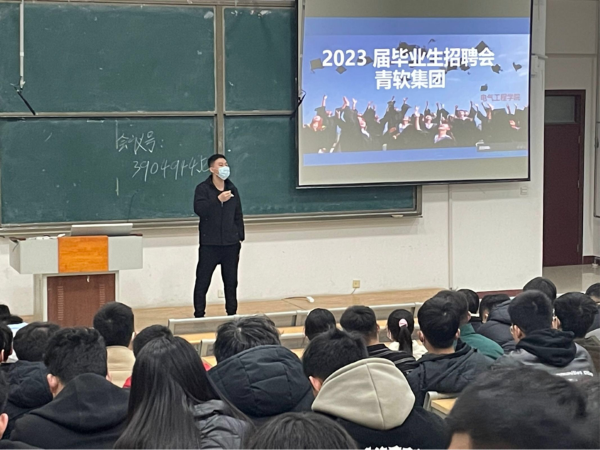 会议首先由青软集团公司代表向同学们详细介绍了自身企业的员工职业发展、工作环境、薪资待遇,企业需求的岗位情况、技能要求、居住生活环境等。本次面向的毕业生包含电气工程公司在内的多个专业,其中设有系统运行、自动控制、电力电子技术、信息处理、试验分析、研制开发、经济管理以及电子与计算机技术应用等具体岗位,为同学们提供丰富的岗位选择。