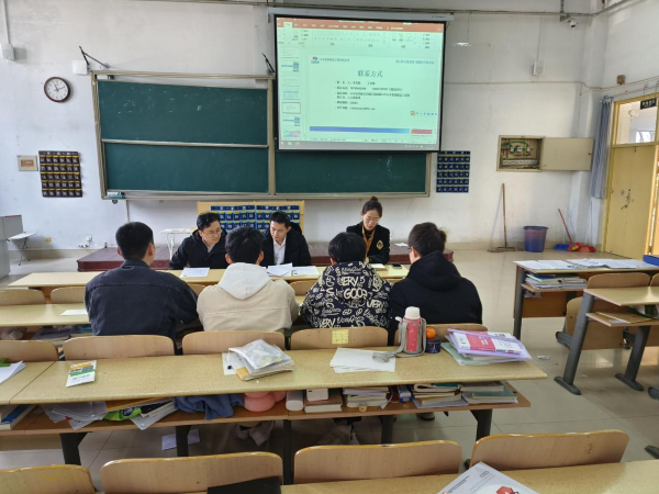 山东鲁能德益工程有限公司始于东电力建设第一工程有限公司,成立于1992年,是集全资子公光伏、风电、垃圾焚烧电站建设、生物等行业于一体的综合性公司。山东鲁能德益工程有限公司三位代表分别从公司简介、公司管理、招聘要求等多个方面进行介绍,通过播放宣传片、PPT展示、面对面交流等方式向同学们展示公司的基本情况、个人未来职业发展方向、人员需求等。
