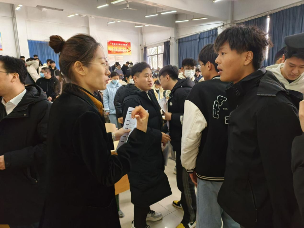 交流会现场,有意向的同学和企业就以后的职业发展问题展开了激烈的讨论。答疑解惑环节,大家积极主动的说出自己的疑虑,招聘方代表认真倾听,做出了仔细而又专业的解答。最后,有实习意向的员工经过招聘方全面、严格、细心的面试后,并在详细的咨询了合同签订的相关事宜后,最终达成了双向意愿。