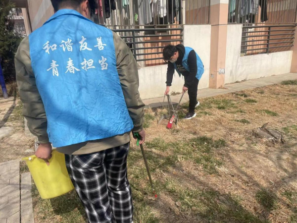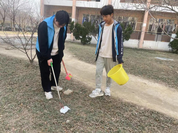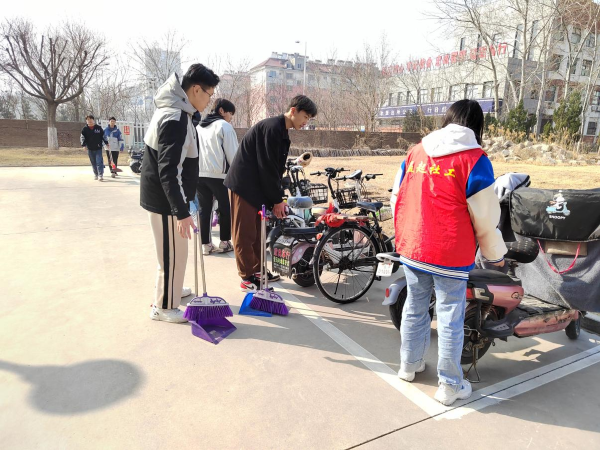 3月5日上午10点,公司组织入团积极分子进行“美丽校园伴我行”校园美化活动。活动开始前,同学们积极准备好卫生工具,按时在指定地点集合进行清扫。每位同学都积极地投身于志愿服务活动中去,大家分工明确互相协作,对11号教学楼周围空地及其树林中的落叶与垃圾进行仔细清扫,并对教学楼前停车区进行规整摆放。