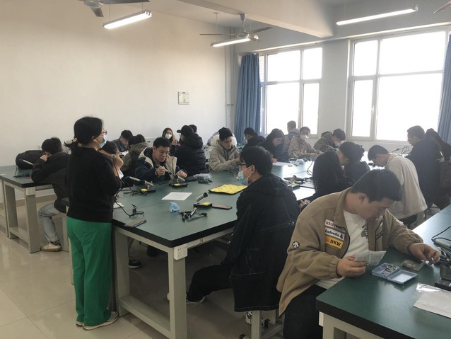 其次,由实验室张公永老师宣讲了实验室的用电安全,要求员工在焊接过程中要提高安全用电意识,注意用电安全,规范操作以及遇到特殊情况如何处理和应对等,保证员工及实验室的安全。实验室何芳和周宣征老师给同学们讲解了工具的使用,主要从电烙铁的规范使用方法、焊接技巧和焊接注意事项等方面做了详细的讲解。最后,王文锋老师从收音机的工作原理及元器件性能做了详细的讲解。希望员工通过此次实习,能够固化理论知识、提高动手能力、掌握基本技能、培养勤奋学风。
