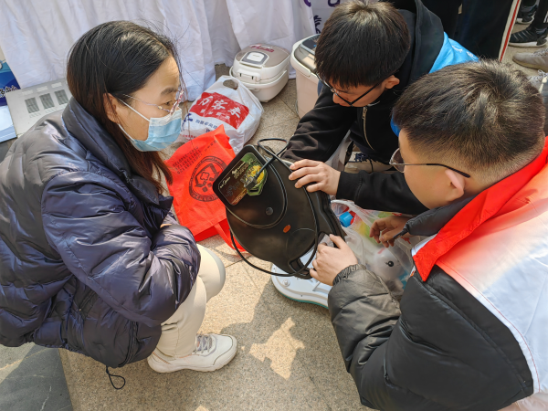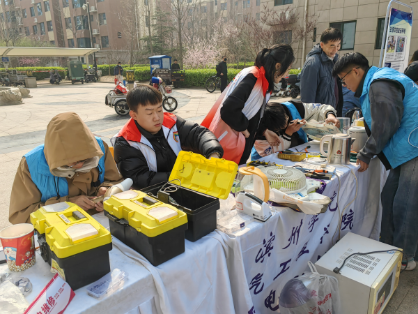 3月19日上午,滨州公司电气工程公司“E来电”助修站联合滨城区志愿者公司走进大学城社区中兴绿都花园,开展“市西有礼、幸福绿都”志愿服务大集市活动,电气工程公司员工依托电气工程专业技能,开展志愿服务活动,免费为社区居民维修故障家电。