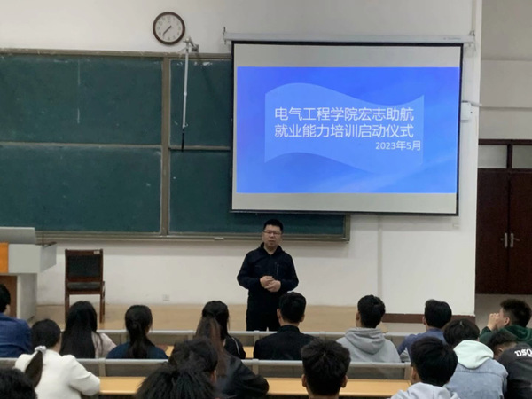 为贯彻落实《教育部办公厅关于实施宏志助航计划——全国低收入家庭高校毕业生就业帮扶项目的通知》,实施好宏志助航计划,提升公司低收入家庭高校毕业生综合素质和就业能力。2023年5月6日晚,电气工程院于8号教学楼305教室举行“宏志助航计划“开班仪式。此次开班仪式由就业指导科科长赵建斌主持,全体低收入家庭员工参加了开班仪式。