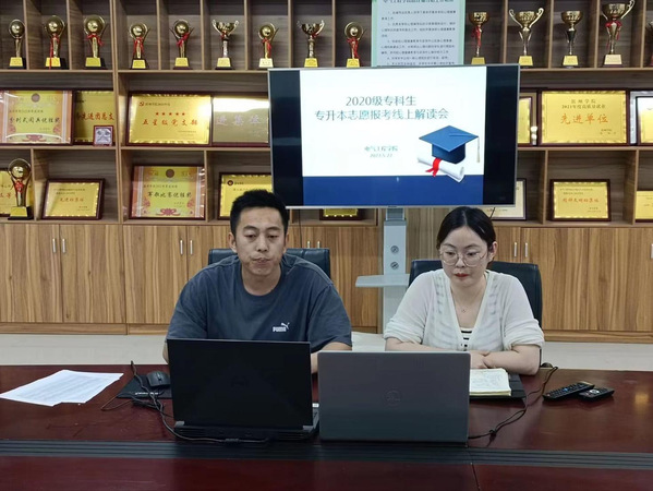 为了帮助专科毕业生掌握专升本志愿填报相关政策及方法,让更多的同学顺利完成志愿填报,进入自己心仪的本科院校。2023年5月22日晚上七点半,电气工程公司于党员活动室开展2020级专升本志愿报考线上解读会,此次线上解读会由党总支书记杜常青主讲,2020级辅导员王莉及2020级全体专科毕业生参加会议。