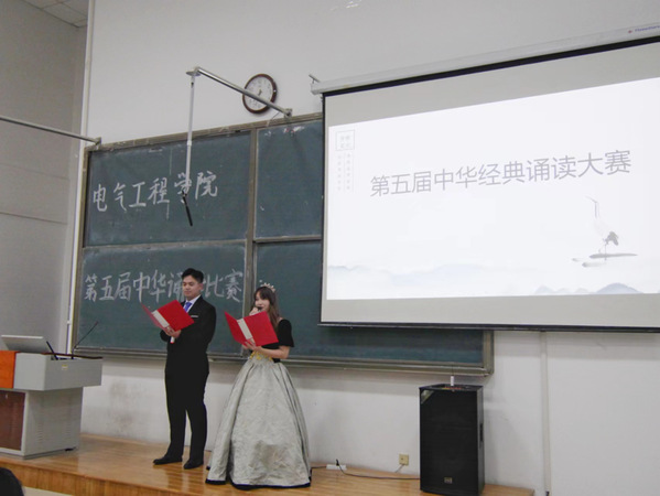 春和景明,绿茵遍野,风暖昼长,正是读书好时节。为进一步提高同学们的文化素养,在诵读中继承弘扬中华优秀文化遗产,增强文化底蕴,营造书香校园。2023年5月24日晚,电气工程公司在8号教学楼305教室举行了第五届中华经典诵读比赛。本届大赛以“诵读经典”为主题,电气学子们共同演绎了他们心中的中华经典。