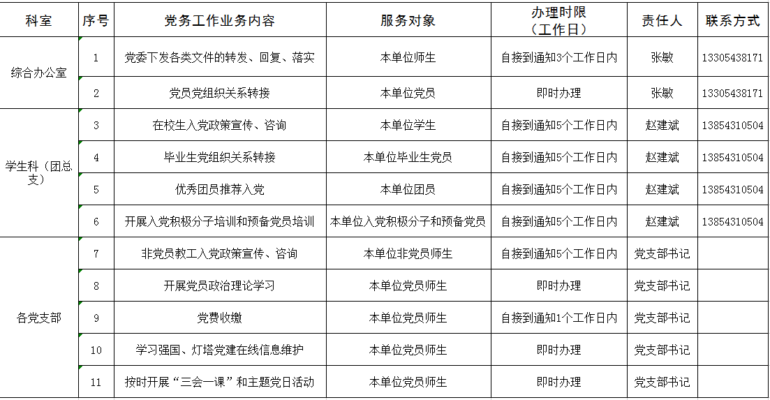 电气工程公司党总支工作业务办理限时承诺公开事项清单