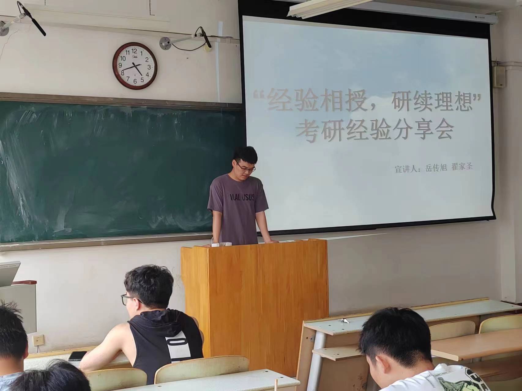 活动开始,岳传旭首先从公司与专业选择、复习时间安排、专业课与公共课复习及复试注意事项等与学弟学妹们做了分享。从自身考研经历讲起,提醒大家考研前需要做好院校的选择,不要盲目跟风。我们需要判断院校地理位置、考虑未来的就业方向等。随后,翟家圣在分享中强调需要选择适合自己的课程,有针对性地复习,细致地向我们解释该如何选取院校,考研听哪些课程,如何选择相关真题等。他提醒学弟学妹们应该注重学科竞赛,这对于考研复试有很大的帮助。最后,更是一遍又一遍强调了做真题的重要性、选择性价比更高的专业课视频以及脚踏实地的重要性。在自由交流环节,同学们提出了自己关于考研的一些困惑以及在备考过程中遇到的问题,学长们耐心解答并表达了对大家的祝福。