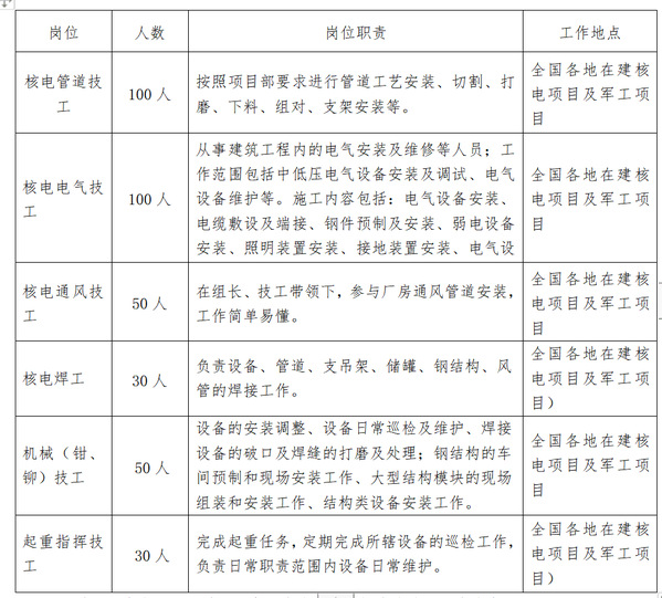 九、工作地点(安置原则:一分二调;也可按本人意愿安置,意向核电站有岗位)