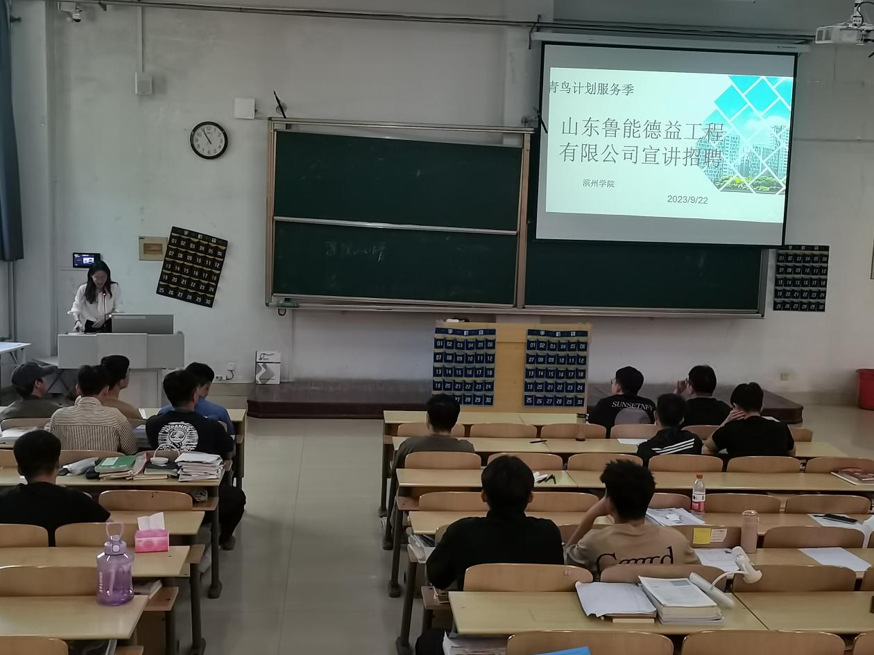 2023年9月22日10:00,电气工程公司邀请山东鲁能德益工程有限公司在7教105面向公司2024届毕业生开展‘青鸟计划,就业服务季’专场招聘会。本次招聘会公司2023届毕业生共有60余人参加。此次招聘,应届毕业生积极应聘。在电气工程公司员工会同学的协助下,公司工作人员井然有序进行了招聘会的准备工作。在招聘会上,公司工作人员放映视频介绍公司的发展历程并进行宣讲,随后以PPT的形式就公司的一些规章制度,福利待遇,企业文化,现有产业结构,组织构架,人力资源政策等几个方面向同学们做了概括。宣讲结束后,应届生们准备了简历和招聘的公司人员进行面对面交流。