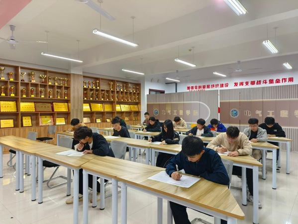 为提高入团积极分子的思想理论水平,提升团员发展质量,帮助入团积极分子深入学习团的理论知识,培养社会主义合格建设者和可靠接班人。电气工程公司于2023年10月25日晚7点在11号教学楼310和313教室举行了2023年下半年入团积极分子培训结业考试,2022级各班团支书担任此次考试的监考员。