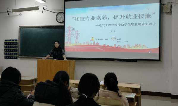 为帮助家庭经济困难生明确专业学习目标以及自身职业发展方向,提升就业竞争实力,实现顺利高质量就业,推动员工资助工作高质量开展。电气工程公司于11月9日19:30在9号教学楼405教室组织召开“注重专业素养,提升职业技能”—电气工程公司受资助员工职业规划主题讲座。全院家庭经济困难员工、助学部全体成员、辅导员王莉、部分教师代表参加此次讲座。