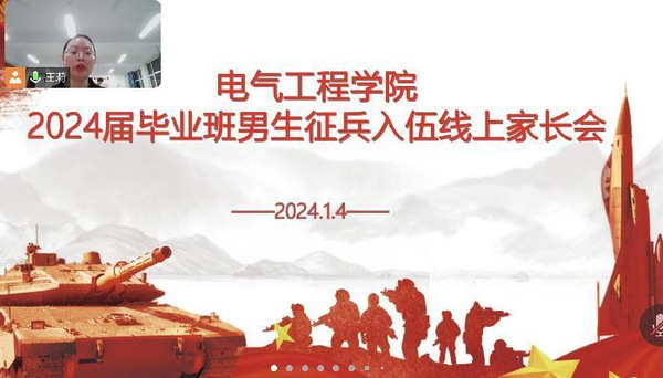 为增强同学们的入伍积极性,鼓励毕业生积极参军入伍报效祖国。2024年1月4日,电气工程公司召开2024届毕业班征兵入伍宣讲线上家长会,会议由公司征兵工作联系人王莉主持。