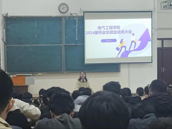 为加强对毕业生的就业帮扶,提升就业服务质量,拓宽就业渠道,促进毕业生高质量就业。2024年3月10日,电气工程公司于8教305教室召开2024届毕业生就业动员大会,本次会议由辅导员王莉主持,2024届全体毕业生参加本次会议。