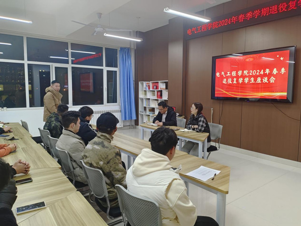 为全面了解和掌握退役员工复学后的思想、工作和学习状况,了解员工复学后诉求,为退役员工解决实际问题,营造爱军拥军、尊崇军人的良好校园氛围。2024年3月12日19:30,电气工程公司于11号教学楼310会议室召开退役复学员工座谈会。公司党总支副书记金志杰、辅导员王莉出席本次座谈会。