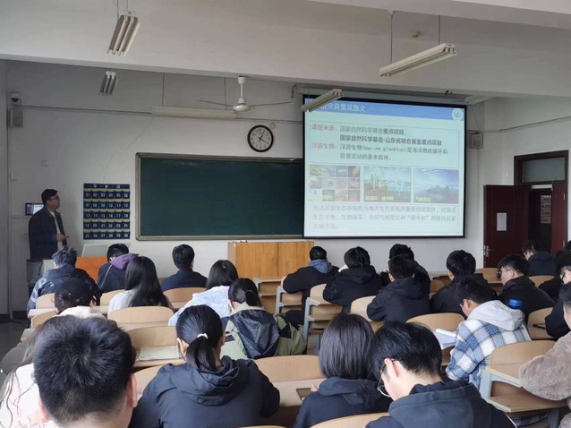 毕志敏从研究课题的背景和意义、课题的研究内容、技术路线、预期目标和成果以及研究基础等方面介绍了海洋生态系统分数阶三维斑图分析与控制方向的研究现状,并重点介绍了其在国家自然科学基金申报中的创新点。与会教师就生态系统斑图模型的建立、样本的采集以及课题成果的应用与毕志敏博士进行了深入的研讨,参会同学也对控制系统建模理论和方法存在的疑惑同毕志敏老师进行了交流。
