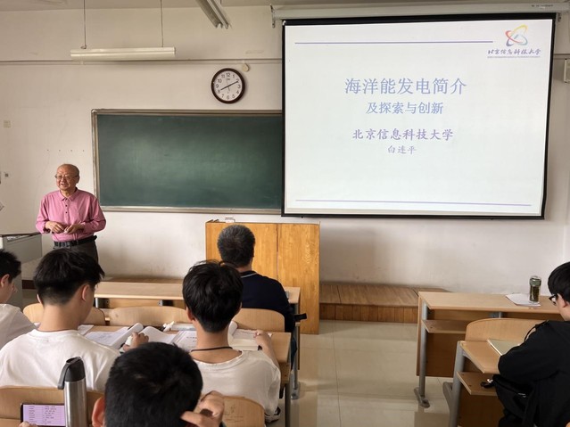 5月16日,北京信息科技大学硕士生导师、海洋能发电领域知名学者白连平教授应邀来校作题为“海洋能发电简介以及探索与创新”的学术报告。白教授结合自己多年来的研究和应用,介绍了海洋能发电的概述、潮流和波浪能发电现状、海洋能发电装备技术发展现状,进而分析了海洋能发电装备技术发展趋势以及潮流能发电装置的创新。报告图文并茂,生动形象,参会师生反映受益匪浅,对于海洋能源利用特别是海洋能发电技术与装备有了进一步的理解和思考。