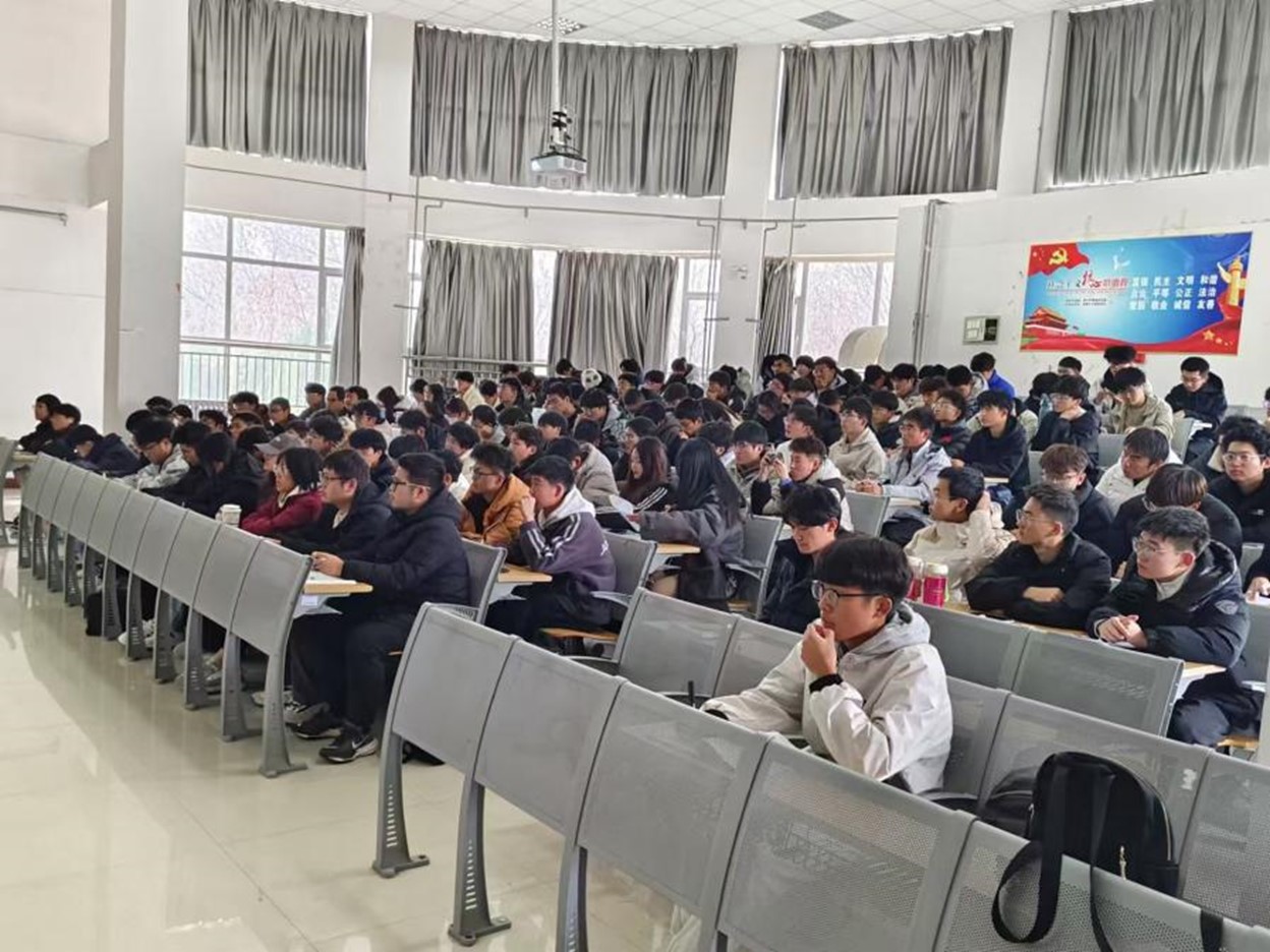 2024年11月26日,电气工程公司经理李宏伟于8号教学楼106教室讲述了以“争做有理想、敢担当、能吃苦、肯奋斗的新时代好青年”为题的思政课,公司2024年入党积极分子、入团积极分子、部分2024级新生共120人参加。