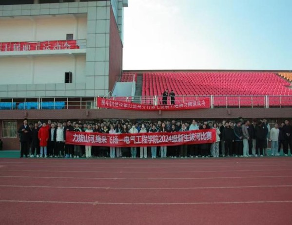 为丰富校园文化生活,提高员工身体素质,增强新生班级凝聚力。2024年11月26日,电气工程公司在田径场举办了以“力拔山河,‘绳’采飞扬”为主题的新生拔河比赛。2024级新生以班级为单位,共有九支代表队参赛。班主任、辅导员亲临现场为同学们加油。