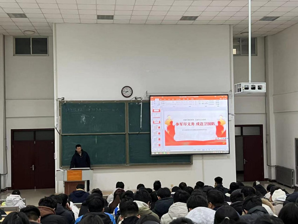 李梦超就征兵工作政策进行了全面讲解,对征兵工作的预征对象、身体条件、学费减免、落户要求、复学助学等情况作了详细介绍;对老员工入伍、报考军校和退役后复学考研、自主择业等方面享有的政策进行了详细解读,旨在让员工们充分了解参军入伍的实惠和好处。同时,他鼓励广大青年学子积极参与国防事业,将青春奉献给国家的建设和发展。并希望同学们在保家卫国的军营里实现人生价值;心系国防建设,把个人的理想追求融入国家和民族事业;响应祖国号召,积极投身军营,履行公民义务;珍惜军旅生涯,磨炼意志品格,增强综合素质,为未来发展夯实基础。