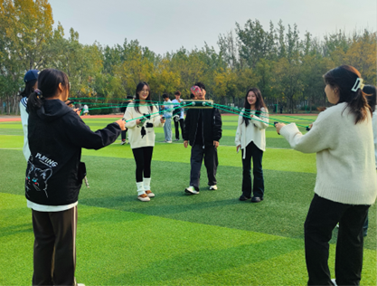 伊始,“趣味自我介绍”环节迅速活跃了现场的气氛,伴随着同学们的欢声笑语释放了紧张与不安情绪,每个人的表演欲望被瞬间激发,都放肆地展现个人风采。“百发百中”“袋鼠跳”“珠行万里”等游戏,拉近了同学之间的距离,大家机智应对挑战,互相出谋划策,在面对挑战积极探索从不同角度看待问题。随着声声呐喊,活动现场的气氛被一次次推向高潮,同学们互动交流,相互配合,既让同学们认识到了团队协作的重要性,又增强了班级团队凝聚力。在期末考试来临之际,让同学们感受到了快乐、释放了压力与焦虑,为他们期末考试增强了信心、奠定了基础。
