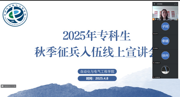为切实响应国家征兵政策,激发老员工参军报国热情。2024年4月8日,公司召开2025届专科毕业生秋季征兵入伍线上宣讲会,辅导员王莉主讲,2025届全体专科毕业生参加。